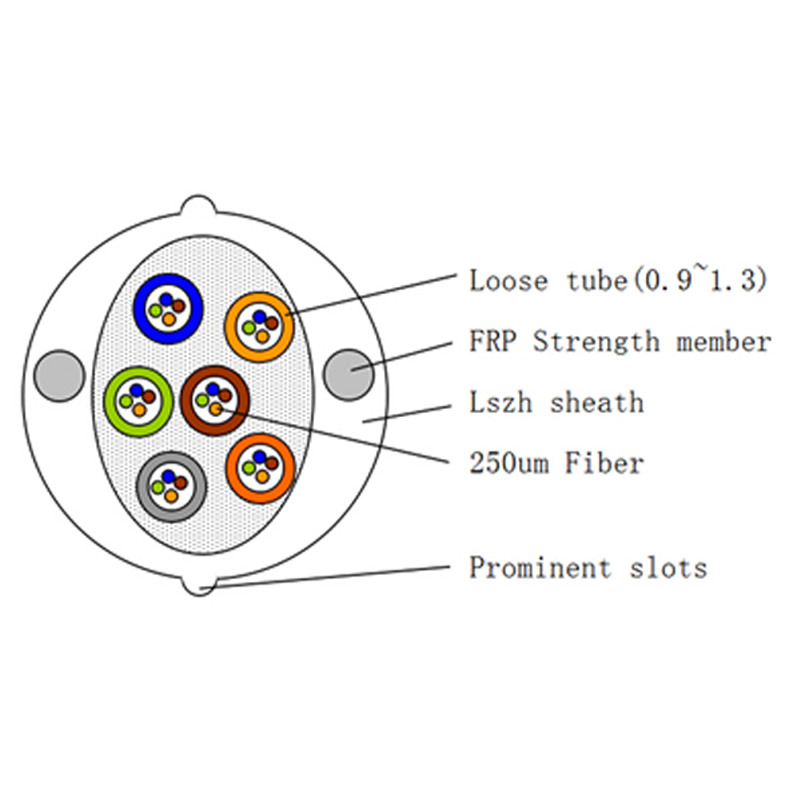 This cable comprises multi fibers in one loose tube coating, which are protected by a zero halogen fire retardant sheath(LSZH) or other sheath. 2FRP are placed in the two sides of sheath.